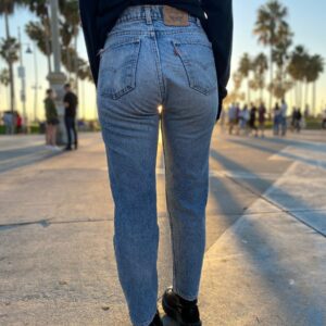 1990S PERFECTLY DISTRESSED SLIGHT TAPER LIGHT WASH DENIM JEANS