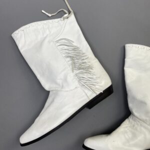 AMAZING! MINT CONDITION! WHITE LEATHER FRINGE PIXIE BOOTS