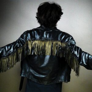 SOFT FRINGE LEATHER MOTORCYCLE JACKET W/ QUILTED LINING