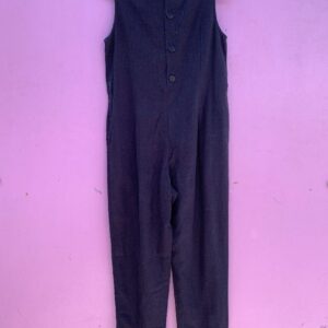 BLACK FADED BUTTON BACK SLEEVLESS LINEN ROMPER JUMPSUIT WITH DRAWSTRING