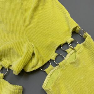 NWT NEON YELLOW FLARED CORDUROY PANTS O-RING CUT OUT DETAILS