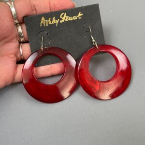 CLEAR RED ACRYLIC MOD STYLE CUT OUT CIRCLE EARRINGS