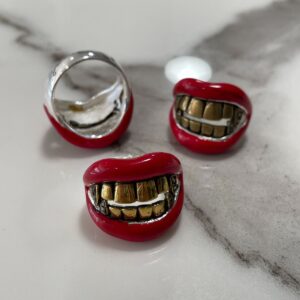 RAD! ENAMELED RED LIPS & GOLD TEETH RING