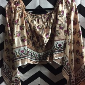SATIN FLORAL PRINT W/ OFF SHOULDER PEASANT BLOUSE
