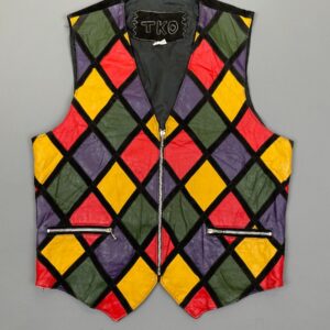 KILLER! 1990S MULTI COLORED HARLEQUIN DIAMOND PATCHWORK VEST