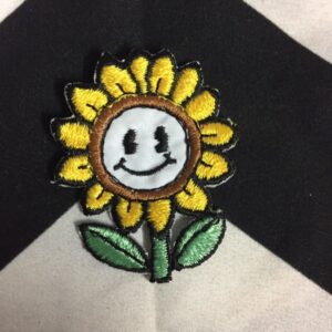 BW EMBROIDERED PATCH – HAPPY FACE FLOWER DESIGN