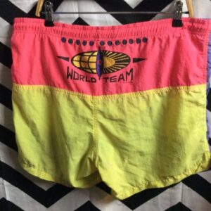 WORLD TEAM OP SWIM TRUNKS W/NEON COLOR BLOCK DESIGN