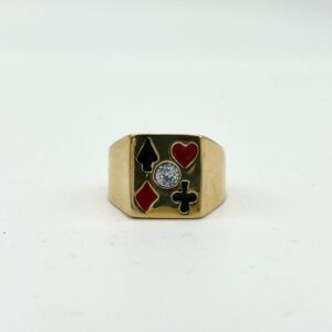 ENAMELED PLAYING CARD SUITS RING W/ CENTER SET RHINESTONE