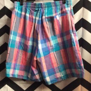 WOOLRICH SHORTS – ELASTIC WAIST – PASTEL COLORS – PLAID DESIGN *DEADSTOCK