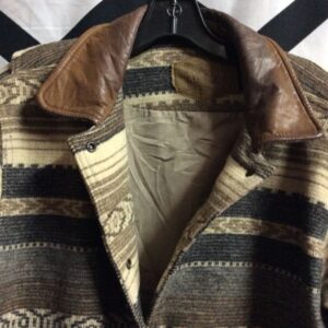 JACKET STRIPED WOOL W/SATIN LINING & LEATHER COLLAR