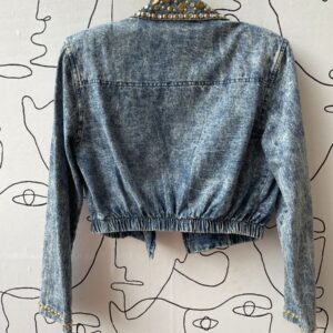 1980S EMBELLISHED ACID WASH CROPPED DENIM JACKET