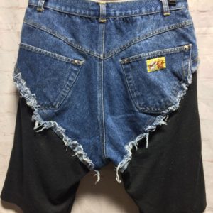 CRAZY FUNKY 1980S BEJEWELED DENIM SHORTS WITH ATTACHED LEGGINGS