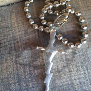 HEAVY BALL CHAIN CHOKER NECKLACE W/ LARGE LIGHTNING BOLT/DAGGER PENDANT