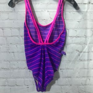 BATHING SUIT ONE PIECE HORIZONTAL STRIPES PURPLE PINK AS IS