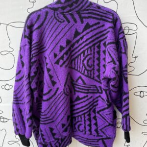 AS-IS AWESOME 1980S-90S GEOMETRIC PATTERN SLOUCHY DOLMAN CARDIGAN WITH POCKETS & RIBBED DETAILS