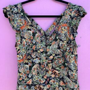 AS-IS CUTE FLORAL PRINT RUFFLED PAISLEY BUTTON FRONT CROSSBACK ROMPER