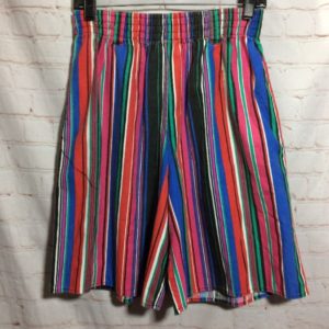 COLORFUL VERTICAL STRIPES DESIGN W/ ELASTIC WAIST COTTON SHORTS W/ POCKETS