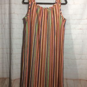 KNEE LENGTH DRESS TERRY CLOTH BRIGHT COLORS & VERTICAL STRIPED DESIGN