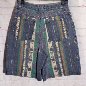 1990’S VERTICAL STRIPES W/ AZTEC PRINT BAGGIE DENIM SHORTS