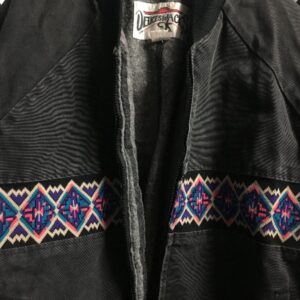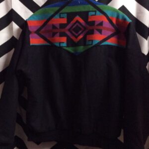 BOMBER JACKET DENIM WOOL LINING AZTEZ/ GEOMETRIC PATTERN STRIP