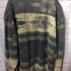 HEAVY WOOL KNIT COWICHAN SWEATER W/ STRIPES & CROSSED GUNS BACK DESIGN
