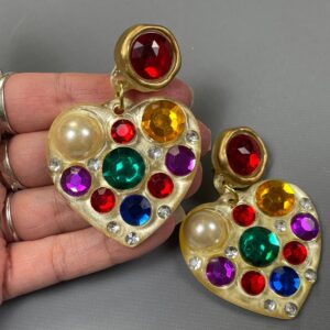 SO COOL! 1980S COLORED RHINESTONE GEM HEART CLIP EARRINGS