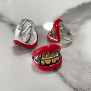 RAD! ENAMELED RED LIPS & GOLD TEETH RING