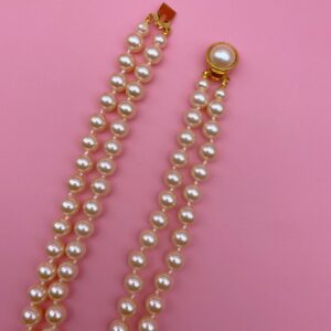 SHORT DOUBLE ROW PEARL NECKLACE SINGLE PEARL CLASP