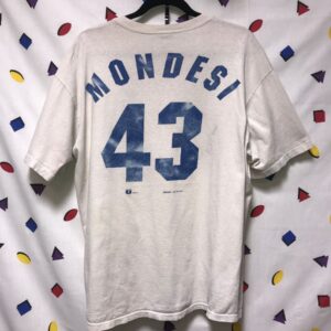 HEAVILY DISTRESSED VINTAGE 1996 STARTER DODGERS JERSEY 43 RAUL MONDESI TSHIRT