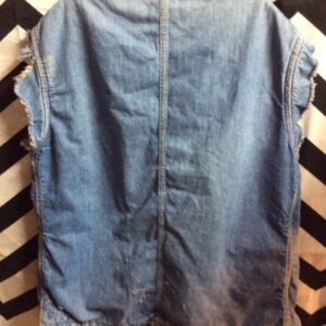 BIG MAC DENIM VEST – CUTOFF SLEEVES – 4 FRONT POCKETS – HEAVILY DISTRESSED – WOOL LINING