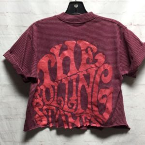 THE ROLLING STONES W/ CUFFED SLEEVES & HORIZONTAL PINSTRIPE CROPPED TOP