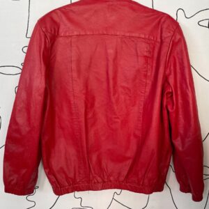 RED GENUINE LEATHER MOCK NECK ZIPUP BOMBER JACKET