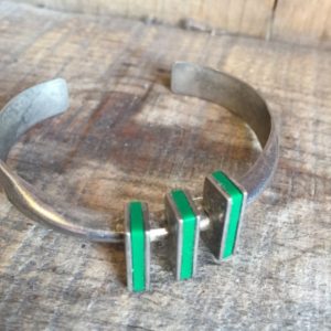 1970S STERLING SILVER BRACELET WITH GREEN STONE MALACHITE STYLE BLOCKS