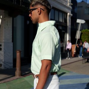SWEET PASTEL PARROT PRINT SLINKY SHORT SLEEVE BUTTON DOWN BLOUSE