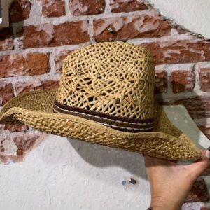 STRUCTURED TALL STRAW COWBOY HAT W/ EMBROIDERED & LEATHER HAT BAND