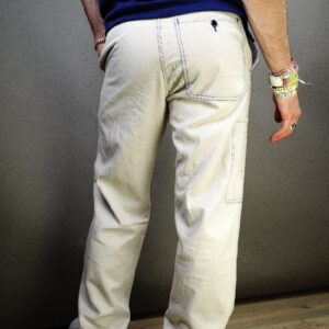 RAD! BLEACHED-OUT FRENCH WORKWEAR PANTS BRIGHT BLUE CONTRAST STITCHING
