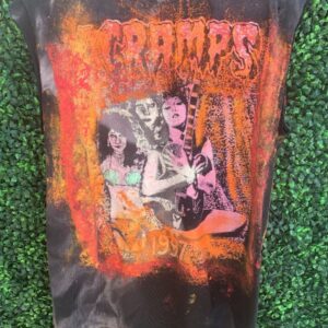 BLEACHED OUT CUTOFF SLEEVE HAND PAINTED CRAMPS BAD MUSIC FOR BAD PEOPLE HAND PAINTED T-SHIRT