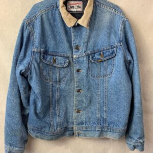 VINTAGE LEE BRAND BLANKET LINED STORM RIDER DENIM TRUCKER JACKET WITH CORDUROY COLLAR