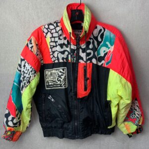 RAD 1980S NEON PUFFY SKI JACKET CRAZY PATTERN SMALL FIT AS-IS