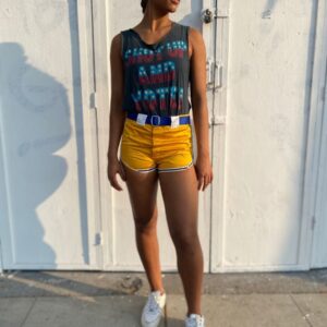 1970S AMAZING SATIN HOT PANTS SHORTS WITH FRONT BELT FAÇADE AND ATHLETIC STRIPE LINING AS-IS