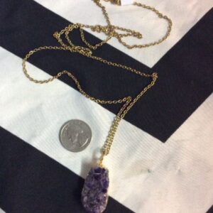 NECKLACE – AMETHYST CRYSTAL – GOLD LOOKING SETTING – BRASS LINK CHAIN