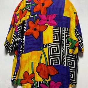 RETRO GEOMETRIC MULTICOLORED RAYON LONG SLEEVE BUTTON DOWN SHIRT