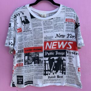 NEWSPAPER ALL OVER PRINT SHORT BOXY CUT T-SHIRT AS-IS