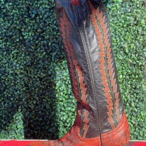 RED HOT LEATHER/ SNAKE SKIN COWBOY BOOTS FROM 1986 W/ EMBROIDERED LIGHTNING BOLT DESIGN AS-IS