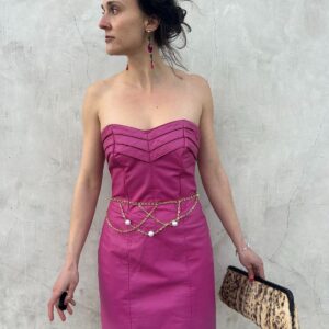 AMAZING MOTO MAMI BUBBLEGUM PINK LEATHER STRAPLESS DRESS