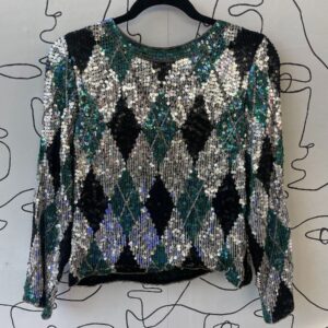 FUN 1980S HARLEQUIN DESIGN FULLY SEQUINED TOP SILK LINING