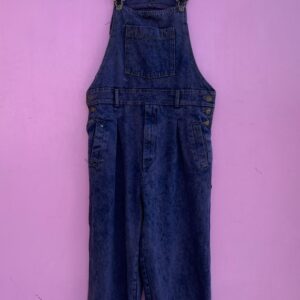 CLASSIC DARK WASH DENIM OVERALLS CONTRAST STITCHING SMALL FIT FUN FRONT POCKET AS-IS