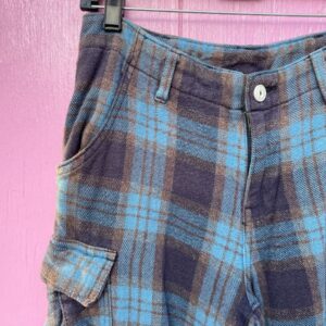 FUN FADED PLAID FLANNEL CARGO PANTS STRAIGHT LEG