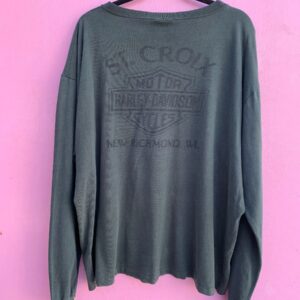DISTRESSED OVERSIZED LONG SLEEVE HARLEY DAVIDSON SHIELD GRAPHIC SINGLE STITCHED T-SHIRT