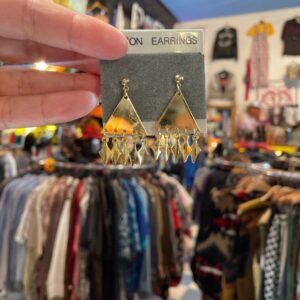 1980S DAINTY GOLD TRIANGLE DANGLING DIAMOND SHAPED POST EARRINGS *DEADSTOCK